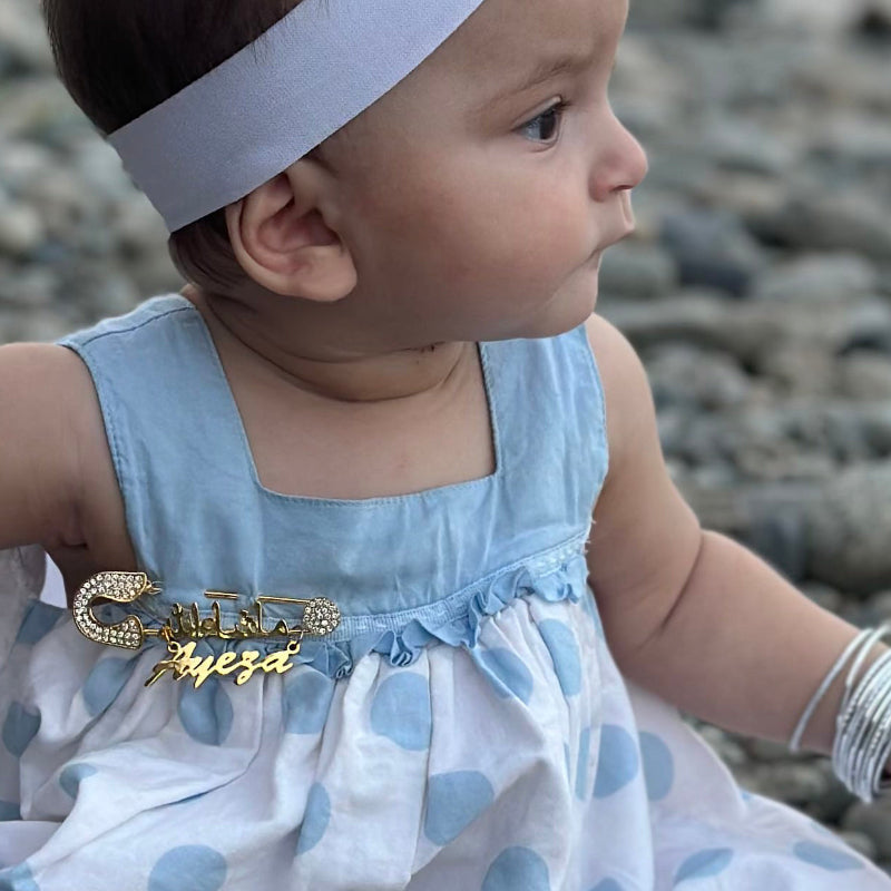 Beautiful Handcrafted Diamante Masha-Allah Pin, with an Ayatul Kursi charm. This pin has an exclusive Ayat-Ul-Kursi pendant which has been customized and is readable, Beware of imitations that are not Ayat-Ul Kursi. The perfect little gift for a newborn, or even a birthday present. It can be attached to clothes, car seats, strollers, baby bags, bassinet or bouncer.